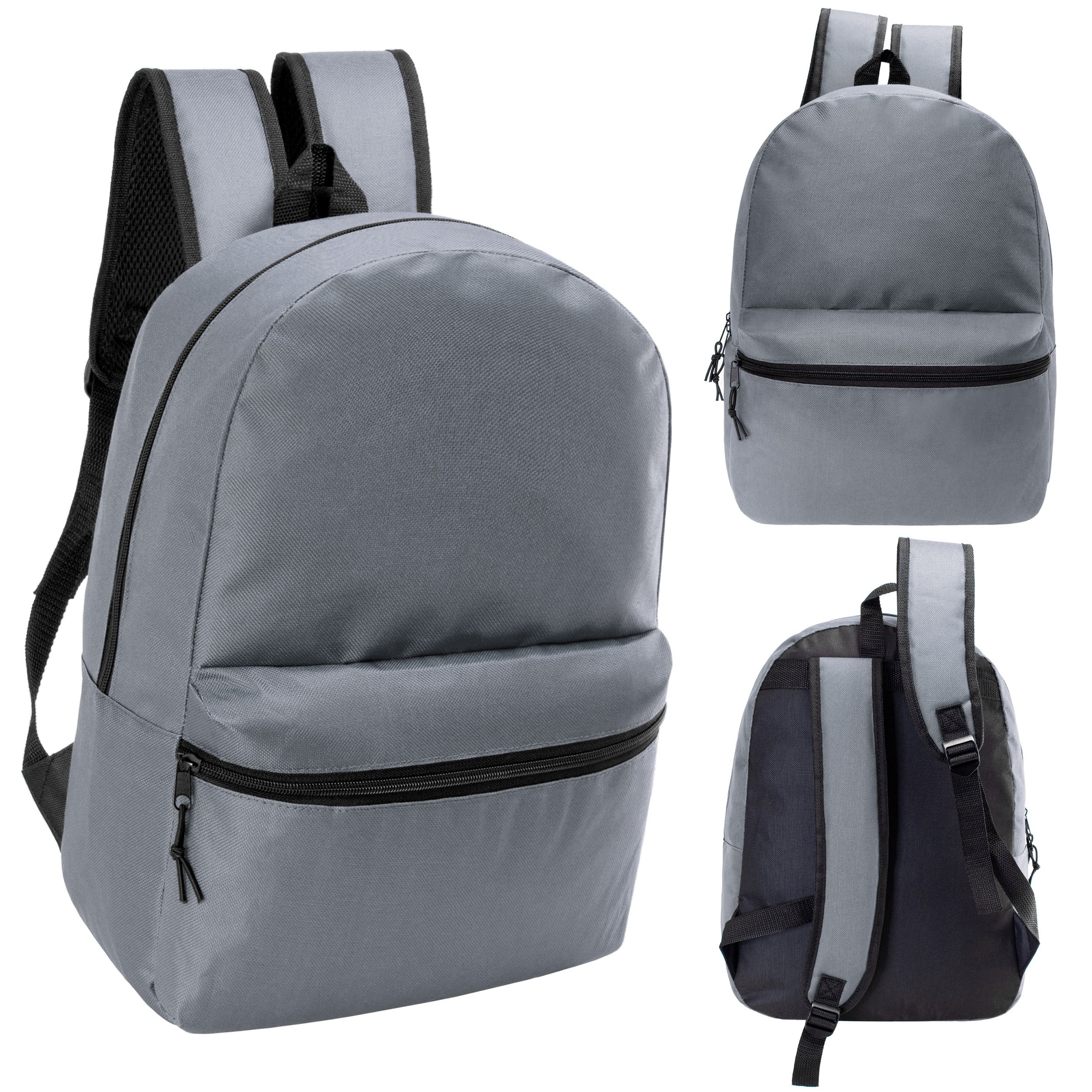17″ Kids Basic Wholesale Backpack in Gray – Bulk Case of 24 Bookbags