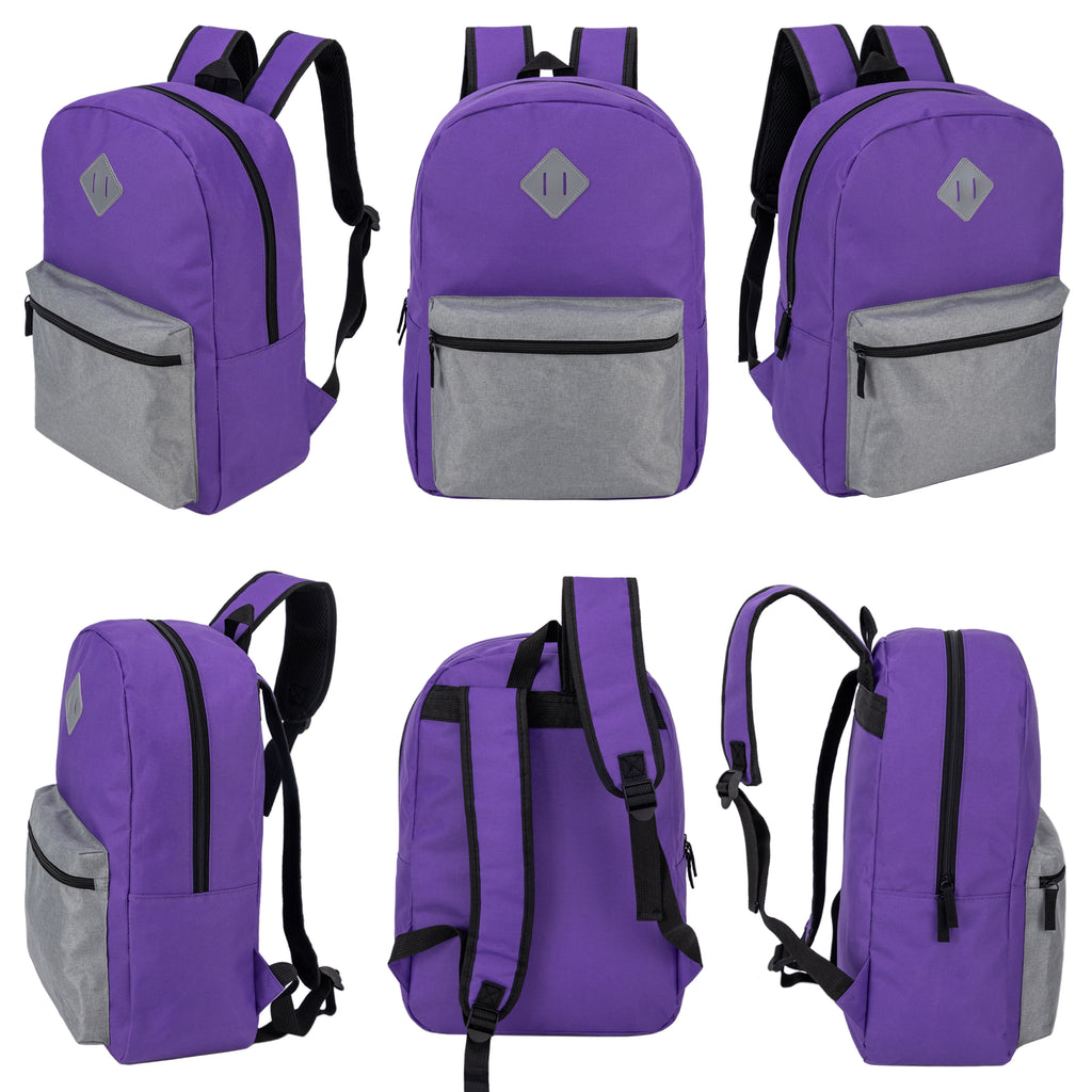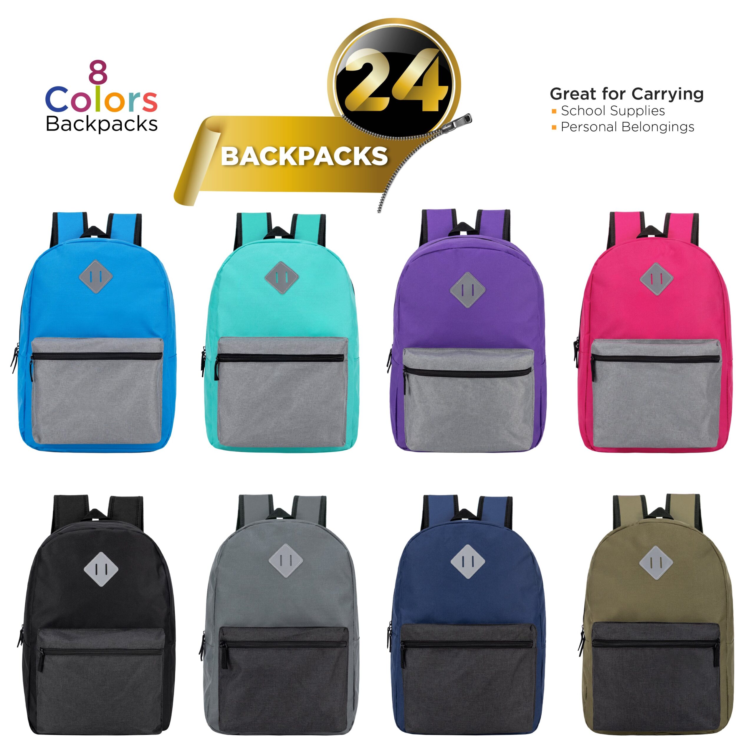 17″ Wholesale Two Tone Backpack with a Diamond Patch in 8 Colors – Bulk Case of 24 Bookbags